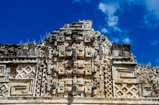 在Uxmal Archaeological Zone內,魔法師金字塔(Pirámide del Adivino)是其標誌性的建築,其獨特的橢圓形底座和高聳的塔身使其在周圍景觀中格外醒目。修女院(Cuadrángulo de las Monjas)和總督宮(Palacio del Gobernador)同樣展現了瑪雅建築藝術的精巧與秩序之美。考古學家認為,這些建築群不僅是宗教儀式與政治活動的中心,也是瑪雅文化象徵的重要體現。如今,Uxmal Archaeological Zone被聯合國教科文組織列為世界文化遺產,其保存狀況與文化價值使人們得以近距離探索瑪雅文明的智慧與美學。