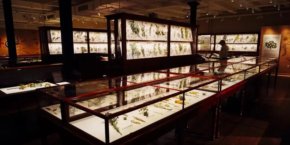 哈佛自然曆史博物館建於1998年,是哈佛大學校園內最熱門的博物館,館內展示1萬2千多種動植物標本,包括恐龍、哺乳動物、鳥類的標本以及稀有礦物和哈佛非常著名的玻璃植物模型,俗稱“玻璃花”。博物館內的展覽既包括現有大量收藏的展示,也有包括“新英格蘭的森林”、“梭羅的緬因湖”和“玻璃中的海洋生物”等多媒體展覽。總之,博物館中無可比擬的藏品與大學科學研究珍貴成果,都很好促進大眾對於自然世界和人類與自然關係的理解。