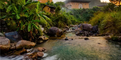 中川古村落創造了被史學家、作家稱為令人不可思議的“中川文化現象”,並被譽為“天下第一僑鄉”、“文武世家”著名愛國僑領、萬金油大王胡文虎先生故居就是此地。景區代表性建築有胡文虎紀念館——虎豹別墅、閩西第一美塔——虎豹塔、客家寶地——胡氏家廟、胡文虎故居,以及“富”字造型的富紫樓等土樓奇觀。地點:福建省龍巖市永定區下洋鎮中川村。