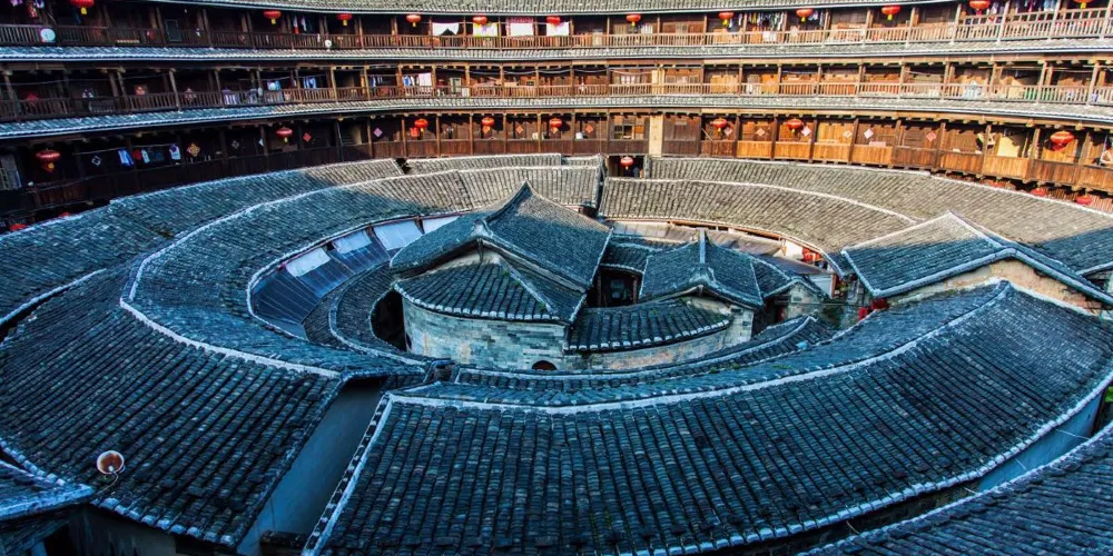 初溪土樓古村落景區繫世界文化遺產地,是福建土樓中氣勢磅礴的土樓羣,擁有5座圓樓和31座方樓。景區不僅規模宏大,還具備了“集中、美麗、古老、特殊、知名”的特點,是文化休閑體驗的旅遊目的地。全國重點文物保護單位“集慶樓”是福建土樓中歷史悠久、結構特殊的圓土樓。全樓建築時沒用一枚鐵釘,72道樓梯與厚度近2米的生土牆共同經歷了600多年的風霜雪雨。地點:福建省龍巖市永定區下洋鎮初溪村。