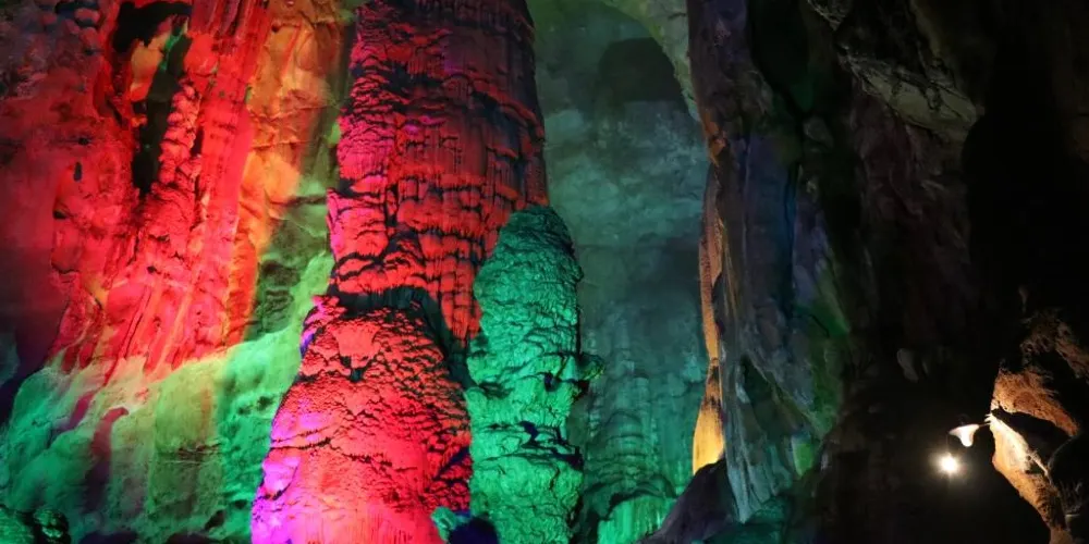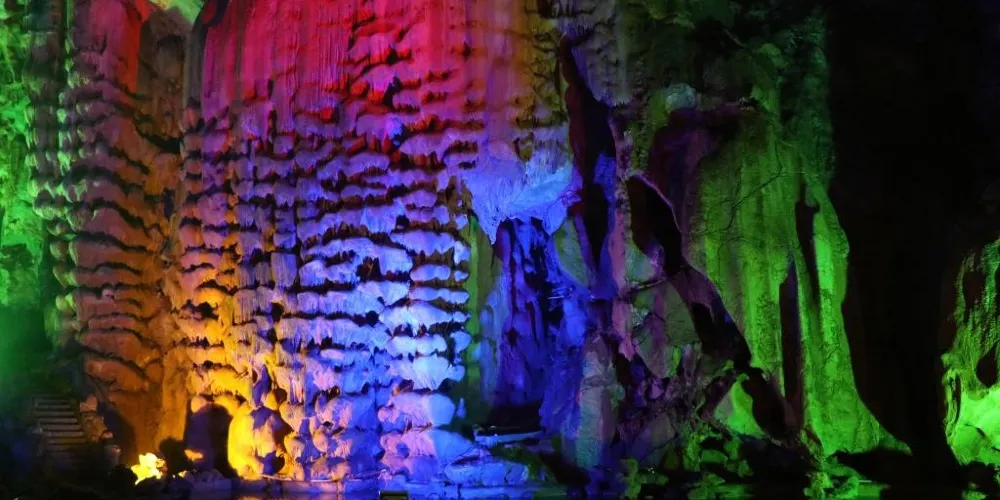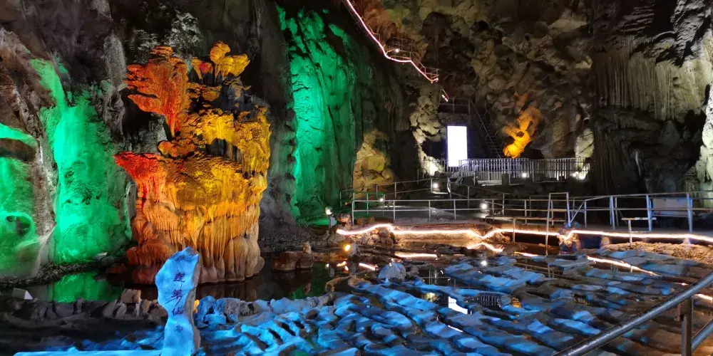 靈山洞景區坐落於杭州市西湖區雙浦鎮,是一個以豎井式石灰岩分層溶洞。洞內石筍高高聳立,石瀑飛瀉,石鐘乳到處都是。其中天柱峰是浙江已發現溶洞中的大石筍之冠,為世界第二的溶洞石筍。另外有大小洞室100多個,洞中美麗多姿的石景,天然的生態環境讓人為之驚嘆、著迷。