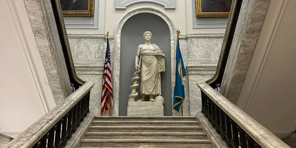 則評價費城市政廳由有名建築師John McArthur設計,建於1871年,為期30年,耗資二千四百萬美金。費城市政廳高達167米,1901年建成時為世界高樓,並保持了7年的記錄。費城市政廳的樓頂矗立著費城的開口者威廉•佩恩的銅像。起初費城規定任何建築的高度都不能高於銅像高度,後來由於發展的需要,不得不在銅像背面佩恩“看不見”的地方蓋起了高樓,因此如今這座建築的東側仍然擁有著古樸風貌,而西側則蓋起了鱗次櫛比的高樓大廈。