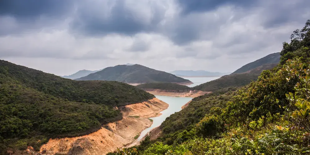 萬宜水庫位於香港西貢區,容量達2.81億立方米。其面向太平洋的東壩,為了防禦洶湧的海濤和鞏固建築結構,加建了一道由七千塊錨形石拼合而成的防波堤,既大氣又秀美,獨具特色,是遊西貢的必選景點之一。很多遊客來萬宜水庫東壩上迎著濕潤的海風觀望日出,別有一番滋味。
