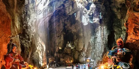 它由五座石灰岩山峰組成,分別命名為金、木、水、火、土,象徵著五種基本元素。每座山峰都有其獨特的洞穴、寺廟和佛教雕塑,遊客可以通過攀登石階,探索這些隱藏在山中的文化瑰寶。山中的洞穴如水岩洞和火岩洞,以其奇特的岩石形態和神秘的氛圍而聞名,是攝影愛好者的天堂。
