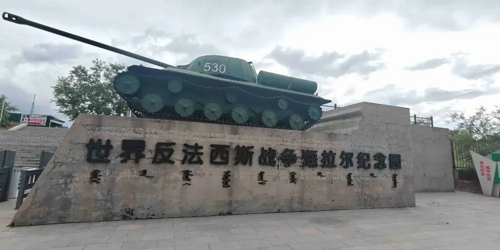 世界反法西斯戰爭海拉爾紀念園位於海拉爾城區西北,是在原侵華日軍海拉爾要塞遺址上建成的軍事主題景區。海拉爾紀念園分為地上、地下兩部分,其中包括海拉爾要塞遺址博物館、主題廣場、地面戰爭遺跡、模擬戰爭場景等部分。在這裡可見到火砲、坦克等許多重型武器,還可進入日軍的地下工事遺跡參觀,了解侵華日軍當年的罪惡行徑。