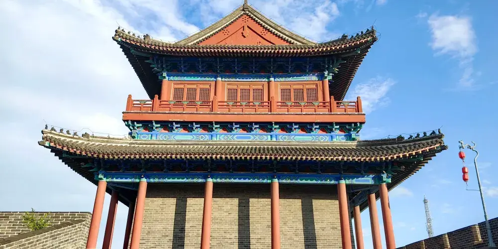 山海關關城周長約4公里,與長城相連,古城內明代城牆保存完好,主要街巷大都保留原樣,使得古城更加典雅古樸。古城引人注目的是關城東門的鎮遠樓,也就是「天下第一關城樓」。城樓聳立於長城之上,雄視四野。登上城樓,可俯視山海關城全貌及關外風光。