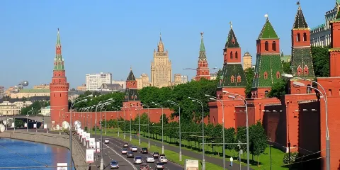 莫斯科的克里姆林宮位於城市的中心地帶,目前是總統府所在地。克里姆林在俄語中意為“內城”,是莫斯科城的發源地,也曾是俄帝國皇宮所在地。在厚厚的宮牆之內,是宏偉的建築群,包括曾是沙皇寢宮的大克里姆林宮,安放多位沙皇遺體的大天使教堂,皇室成員結婚、洗禮所在的天使報喜教堂,舉行沙皇加冕禮的聖母升天大教堂,古代起到報時作用的伊凡大帝鐘樓,存放沙俄皇室珍寶的軍械庫,以及總統辦公大樓和蘇聯時期修建的大禮堂。