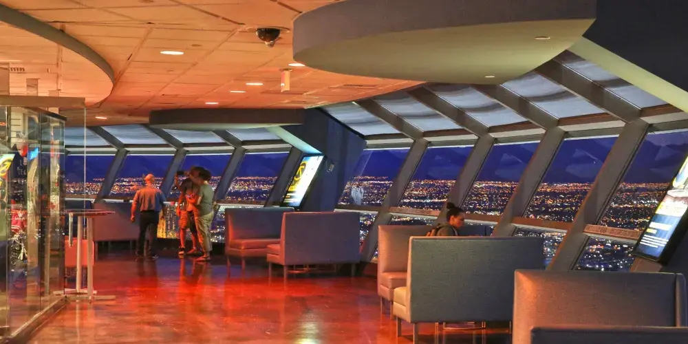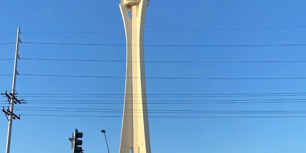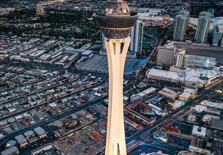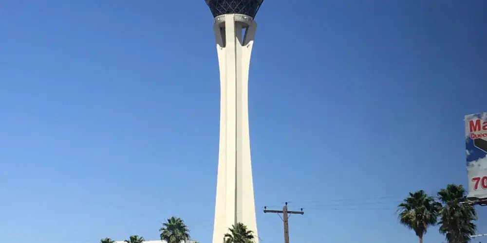 天空塔位於拉斯維加斯北端,又稱為塔樓酒店。算是拉斯維加斯比較有名的建築了。塔頂遊樂場設有跳樓機,塔頂雲霄飛車被評選為世界十大驚險雲霄飛車之一。如果您害怕高空驚險項目,可以選擇240m高度的旋轉餐廳,在這裡您可以品嚐正宗的美式美食,欣賞拉斯維加斯的美景。