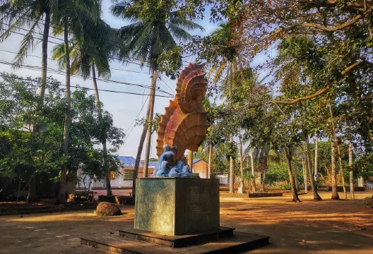 海底村莊是一處由地震造就的奇特景觀,明朝時期的瓊北大地震,使得70多個村莊大面積沉陷,於是陸地成海,地震遺址就此沉在海底。若是運氣好,遇到大退潮,從東寨港至舖前灣一帶海灘上的古村廢墟便依稀可見。