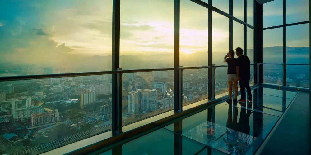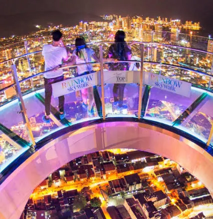 TheTOPPenang,在這裏你可以去科技園、Jurrasic公園,和孩子們一起狂歡。有小型檳榔嶼建築博物館和durian博物館。有不同的遊樂場所,可以盡情享受。玩了所有設備之後,你可以去65層和68層,從檳城非常高的建築上欣賞風景。