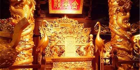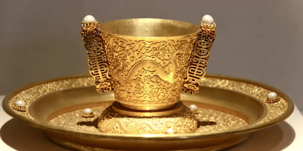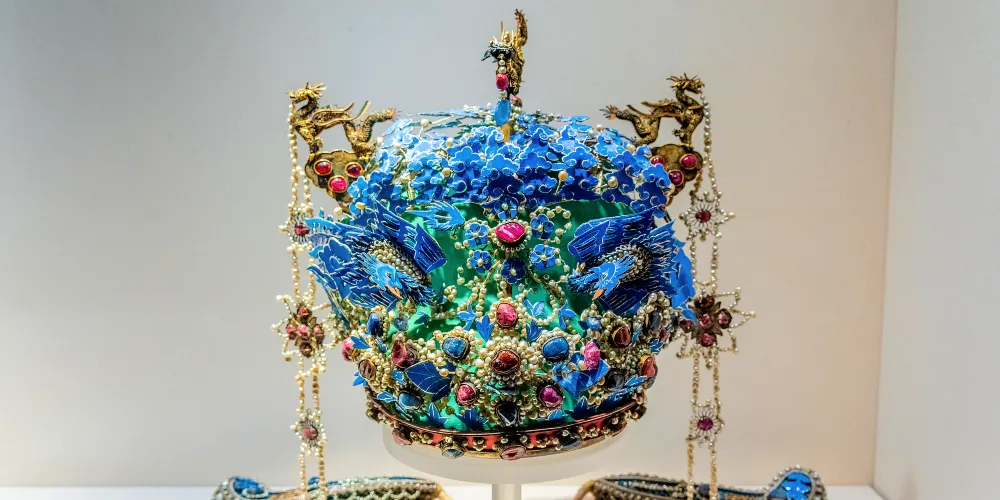 ▲ 珍寶館位於寧壽宮區域,館藏珍寶尤其豐富,涵蓋佛教用品、飾品、日用器具和賞玩珍品等。其中,高約十四公分的紅珊瑚獅子、長約一百三十公分的東珠朝珠及金「奉天之寶」璽等,都是難得一見的珍品。