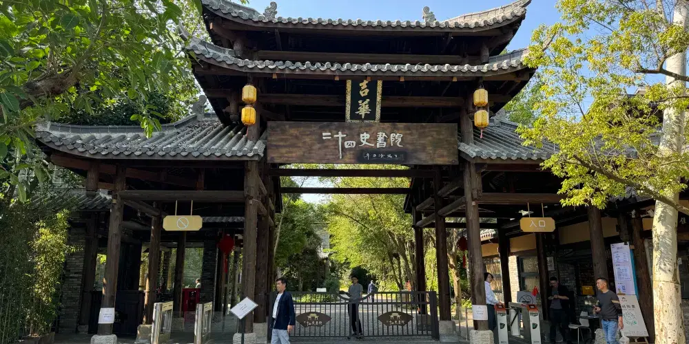 二十四史書院是大型文旅集團華僑城集團旗下華僑城文化集團投資逾億元,圍繞“二十四史”IP規劃打造的東方書院,構建起二十四史文獻系列展覽、東坡書屋等特色書店羣、小涼帽親子繪本屋、花兮茶會雅集和記憶民謠音樂晚會等五大文藝內容。同時舉辦作文、繪本、音樂三大文藝賽事,以“讓閲讀更美好”為宗旨,將閲讀、旅行、社交與教育融為一體,打造都市人的文藝家園。該書院坐落於深圳龍崗甘坑古鎮文化旅遊區,佔地3萬平方米,以東方園林建築美學為空間營造手法,結合自然及建築資源,因地制宜錯落有致掩映在山水林泉之間。未來,二十四史書院將在全國佈局,結合在地文史構架文化主題,打造文化地標和文藝家園,再現“二十四史”宏大文化格局和中國書院的千年魅力,為中華文化偉大復興貢獻書院樣板。
