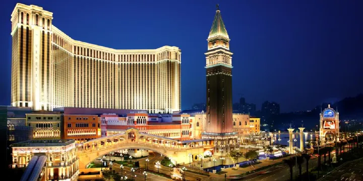 澳門威尼斯人度假村是集飯店、會展、購物、體育、綜藝及休閒設施於一體的綜合性場所。飯店以水都威尼斯為主題,內部佈滿威尼斯特色拱橋、小運河及石板路,充滿義式浪漫狂放的異國風情。如果你是購物狂,不能錯過大運河購物中心,來一次貢多拉之旅,頭頂一幅偌大的天幕,即使子夜時分,一樣會出現藍天白雲,讓人分不出是室內還是室外、晝夜還是晨昏。大運河的兩岸雲集了幾百家購物商鋪,數十家的餐飲店,環境典雅瑰麗,彷彿置身昔日威尼斯的街道。逛累了,也可在購物中心內的聖馬可廣場休息片刻,這裡經常舉行精彩的表演,如鋼琴獨奏、默劇等。