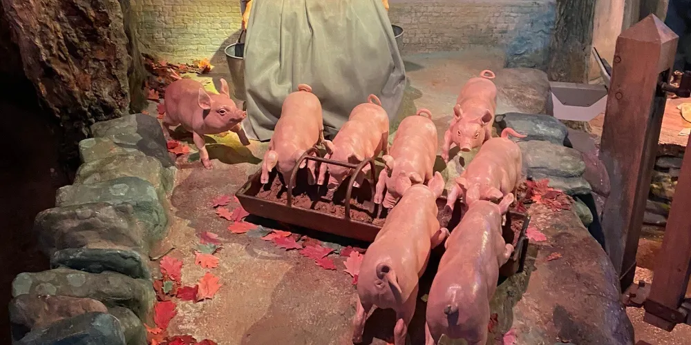 屋內的陳設還原了主人當年居住時的場景,能看到當時的傢具和擺設,這座小屋和花園也是波特女士不少插畫作品的原型,每個房間都有一副關於彼得兔故事情節的畫作掛在牆上,讓人彷彿走進小貓湯姆和小豬布蘭德的世界裡。
