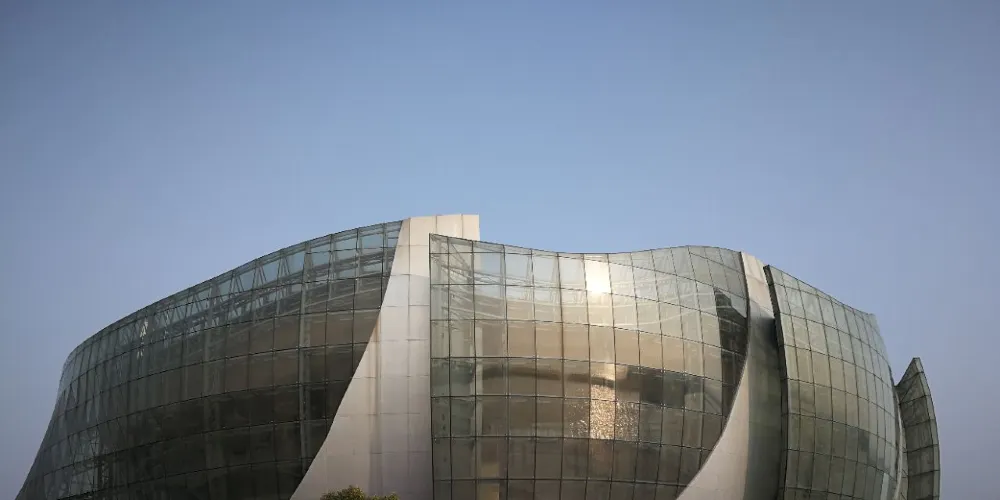 徐州音樂廳位於雲龍湖北岸。音樂廳外型以市花紫薇為創作原型,好像在水中盛開的花朵。室外演出廣場借景周邊的雲龍湖、雲龍山、沙月島等,山、水、建築融為一體。音樂廳主體為通高觀眾廳,圍繞觀眾廳設置三層觀景平台,將室外自然景觀延伸至室內,同時精心設計了觀眾流線、景物流線和功能分區等,體現了現代化音樂廳的建築特點。