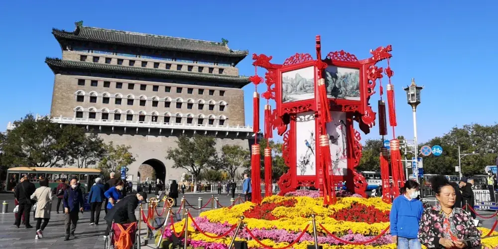 天安門廣場位於北京中心,南北長880米,東西寬500米,面積達44萬平方米,可容納100萬人舉行盛大集會。廣場內沿北京中軸線由北向南依次矗立著國旗杆、人民英雄紀念碑、毛主席紀念堂和正陽門城樓。