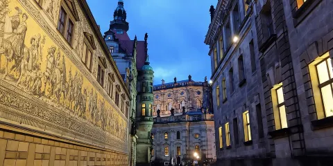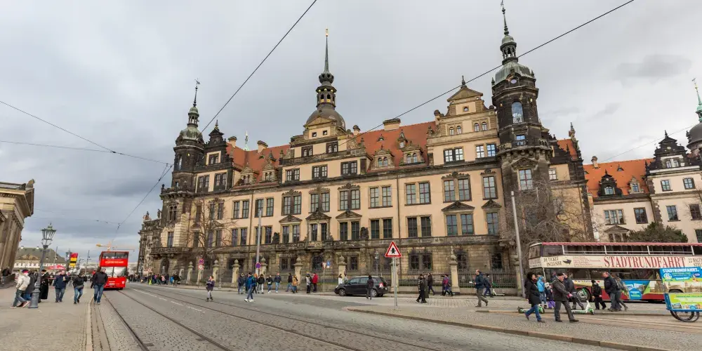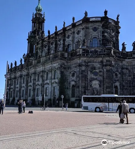 德累斯頓王宮是德國最為恢弘、重要的宮殿建築之一,1485年起便是曆代撒克森王國統家族的居住地,也是當時該地區的政治權力中心。宮殿在二戰中曾一度毀於戰火,之後按照原貌複原重建。這座宮殿建築融合了多種建築藝術風格,鵝黃色的外牆配上紅色屋頂和青銅色的圓頂,頗為雍容華貴。新建的封閉中庭的玻璃球形穹頂十分特別,這裡設有售票處、紀念品商店、咖啡館,免去遊客以往須在露天排隊等待的困擾。