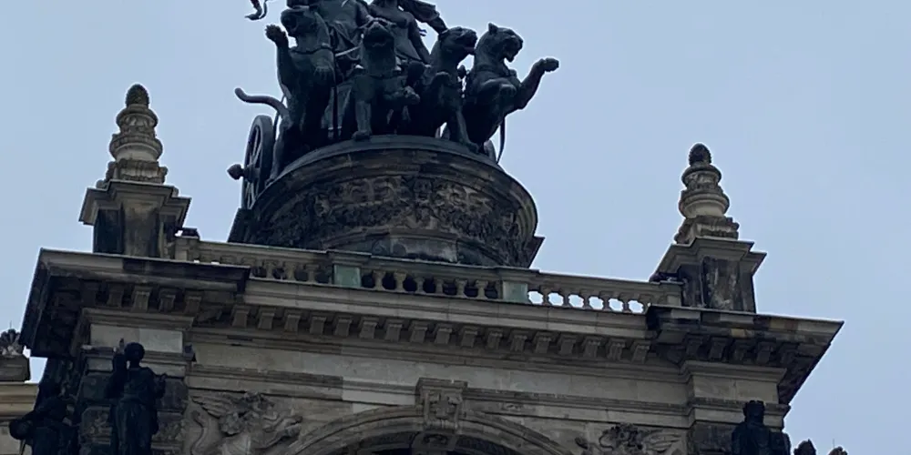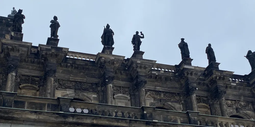 茨溫格宮外牆上有一幅101米長的瓷器壁畫——王侯出征圖,被稱為世界最大的陶器藝術品。展示了從1127年到1876年薩克森的三十五位統治者騎馬出行的雕像(雕像的下端標有他們的姓名),還有有隨行的科學家、藝術家、工匠、士兵、兒童和農民,總共九十四人,人物生動、栩栩如生。