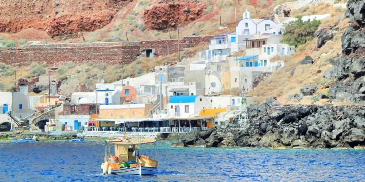 錫拉夏島是聖托裡尼的第二大島,與錫拉島相距很近。這裡城鎮與鄉村的獨特風情一定會給旅行者以不一樣的體驗。建築頗有特色,而且這裡也是可以眺望對岸建造在懸崖頂上的白色房屋的觀望處。