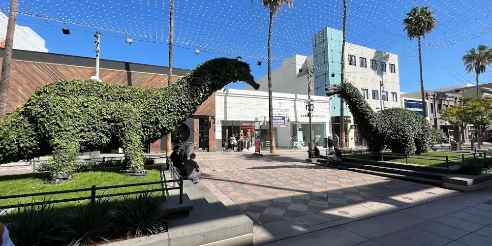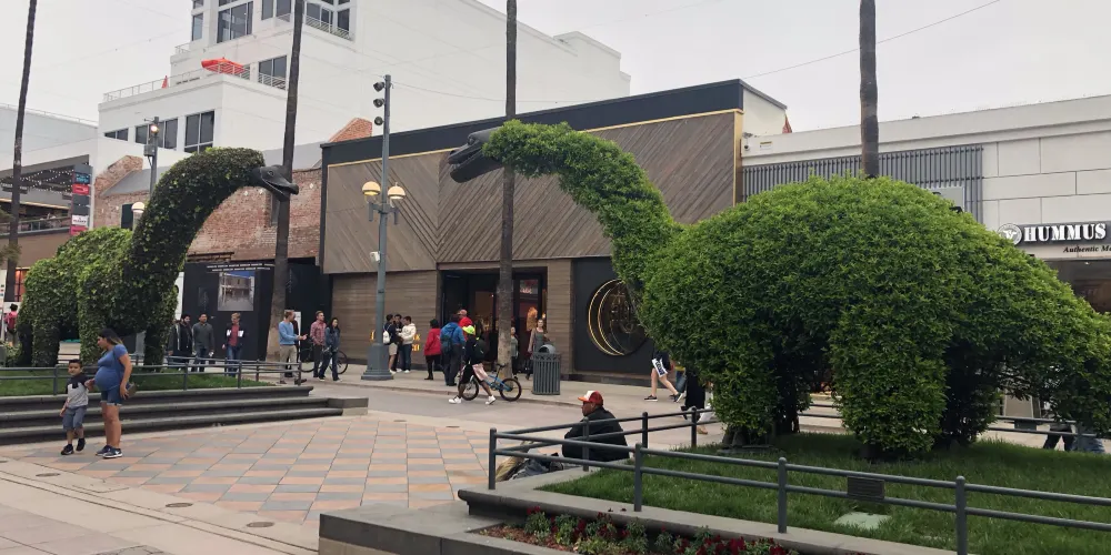 聖莫尼卡碼頭前的標誌牌匾,標誌著北美66號公路的終點,是遊客照相留念的經典場所。