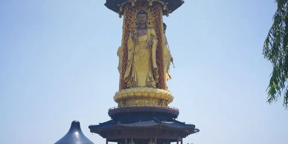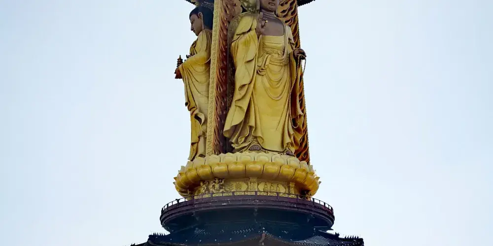 這是一座樓閣式佛塔,塔高81米,塔身為佛像,整座塔金碧輝煌,非常壯觀。