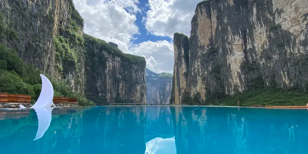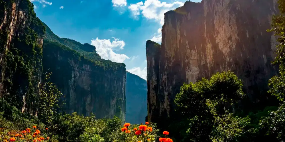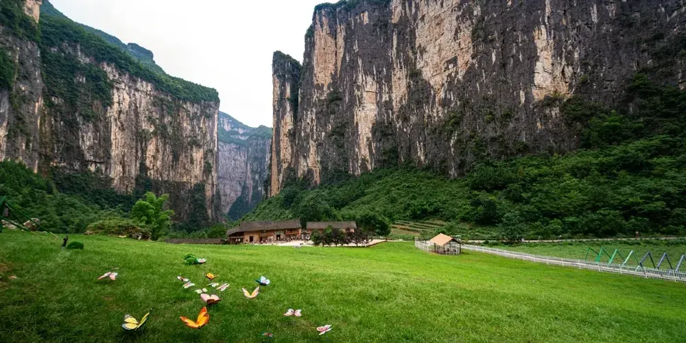 三峽原鄉景區,位於奉節縣興隆鎮回龍村椅子淌腹地,距離縣城約50公里,景區總面積823畝,具有典型的喀斯特地貌特徵,景區內兩塊巨大絕壁高610米,寬420米,相對而立、山勢沖天,猶如一扇石門劈開,被地質界稱為世界上大的“山門”,又因酷似中華山水之門“夔門”,被當地人稱為“旱夔門”。三峽原鄉景區便坐擁集“短、奇、秀、幽”為一身的旱夔門,與迷宮河景區自成一體。三峽原鄉景區於2020年7月1日成功開園,2021年4月被評為國家AAAA級旅遊景區。景區以“原山原水老家原滋味、鄉里鄉親鄰里鄉情濃”為田園特色,強調“賞原生態美景、住原住民客棧、吃原滋味美食、享原鄉間生活”的鄉野體驗。獨具匠心開發了七彩花田、九曲花階、花姑驛站、繁花清吧、桃花塢酒窖、田園牧歌麪包坊、奶牛夢工坊、幸福草坪、親子牧場、漫遊步道、無邊水池等休閑體驗項目,讓遊客看鬼斧神工,賞奇峯異石;行青山人家,吃原味美食;探桃源深處,住民宿客棧;戲澗水落花,玩谷幽水秀。