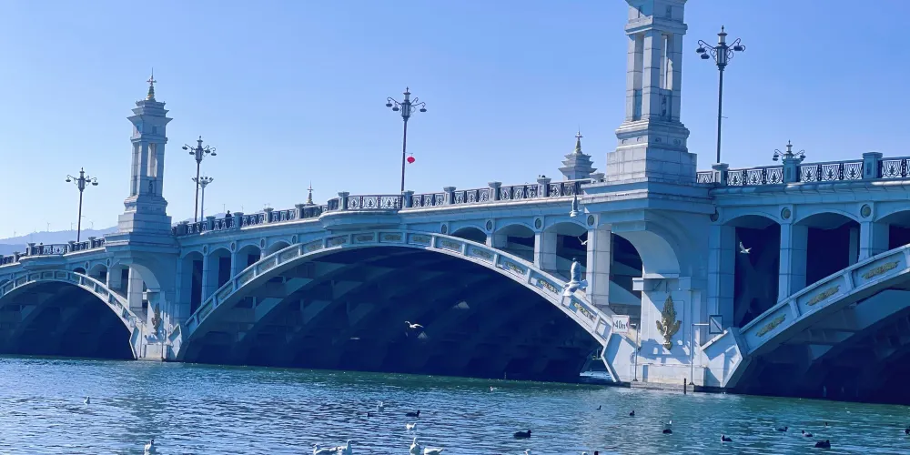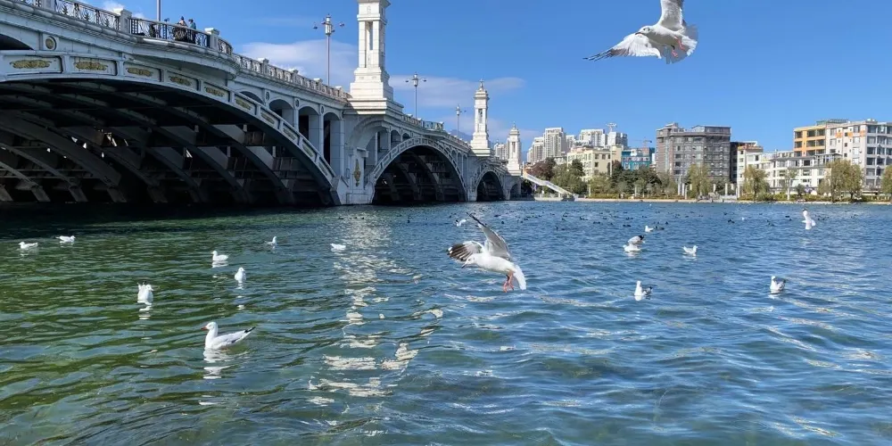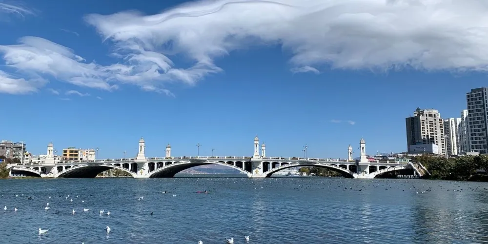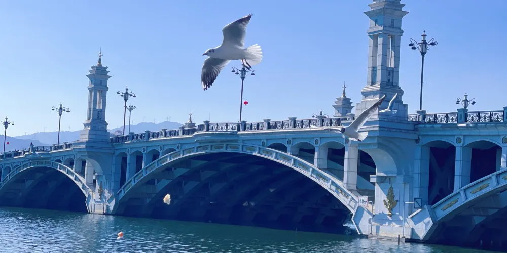 這是是一座具有歐式風格的大橋,登上大橋,人們可以看洱海,賞蒼山;橋下有很多海鷗,如此美麗的景色,吸引無數人前來拍照打卡。