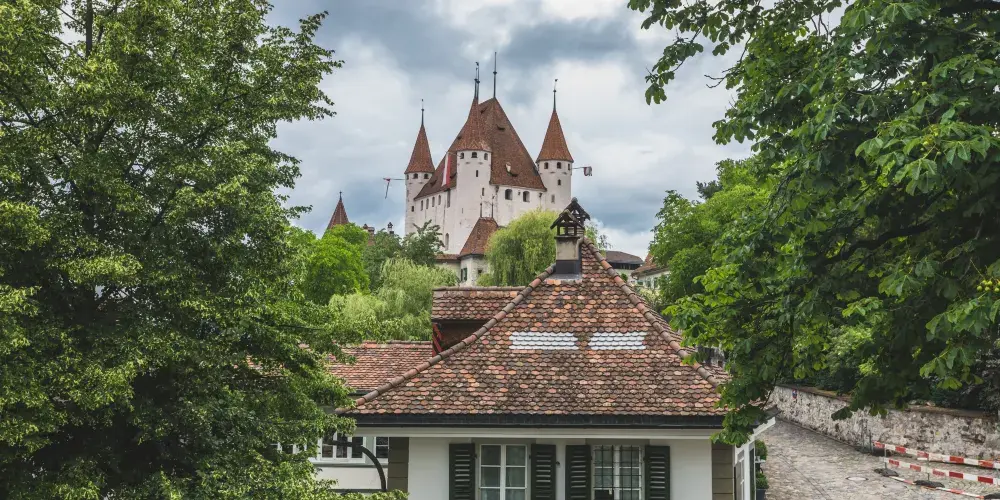 圖恩城堡位於圖恩湖西北角的阿勒河畔,由柴林根公爵建於12世紀末,當時是一座純粹的辦公城堡。15世紀,伯爾尼人對這座引人注目的建築物進行了擴建,使其擁有了壯觀的屋頂。