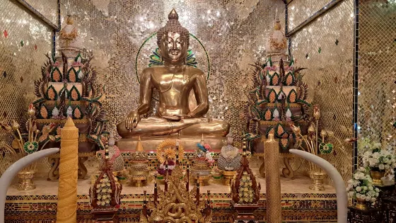 4.7 分1,086 則評價距離市中心1.2公里帕辛寺與雙龍寺、大佛塔寺並稱為“清邁三大寺廟”,位於清邁古城西端。這座寺廟是帕於王為紀念其父親而建於1345年,後多次擴建,因供奉著令人敬畏的帕辛佛像而出名。寺中裝飾金碧輝煌,有工藝精湛的木雕、關於佛教故事的壁畫,細膩精緻、栩栩如生,值得好好觀賞。帕辛寺內樹木蔥鬱,香火鼎旺,遊客眾多,如果早晚課時前往會看到僧人在佛堂吟誦經文,十分虔誠。