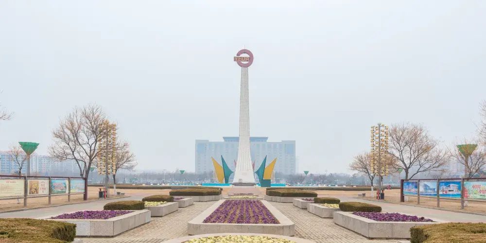 天地廣場位於煙台經濟技術開發區中心,北臨長江路,南接珠江路。廣場以綠為基調,突出自然植物主體,點綴雕塑、小品等人工景物。廣場中軸線將廣場分成南北兩個觀賞羣,以表達天地廣場的含義。北為與“天”有意的“太陽”廣場,中心向外採用放射狀道路,以形似陽光,南為與“地”有意的“大地”廣場,中心圍以規劃的環狀道路,以形似大地。徜徉在這綠色的植物海洋中,可以盡情享受美好生活的無限樂趣。廣場上豎立着中國煙台經濟技術開發區的區標,立題為開放明珠閃爍,與日爭輝;碑體周圍六帆風順,八泉競湧,意為激流勇進,興旺發達。