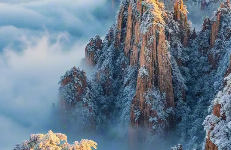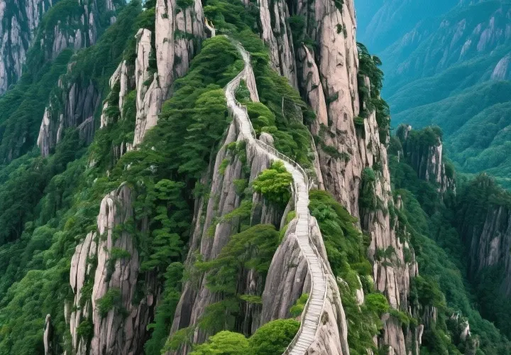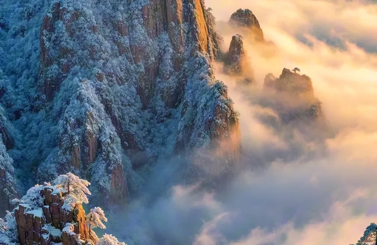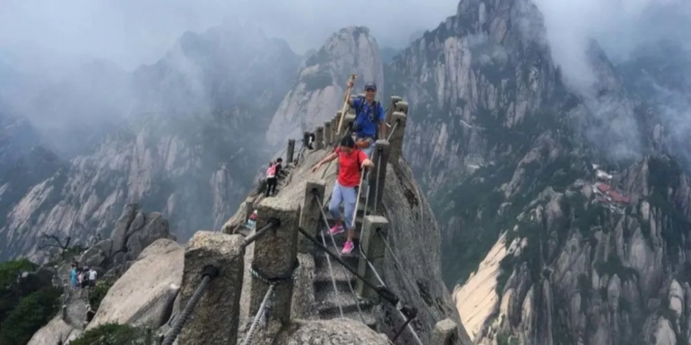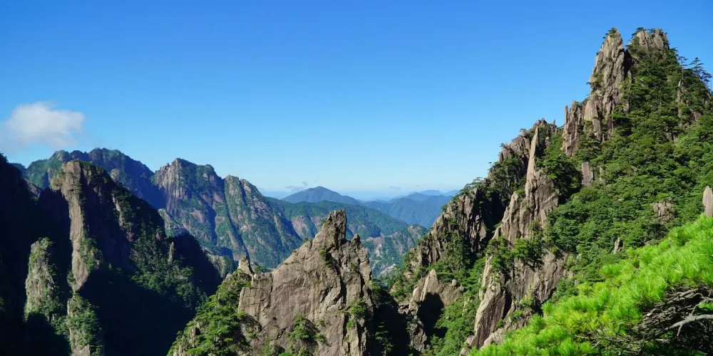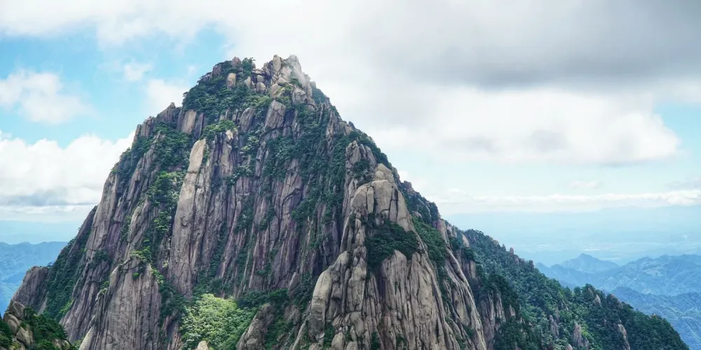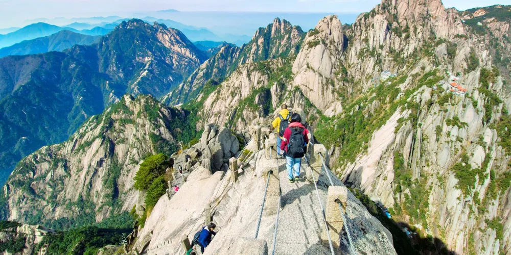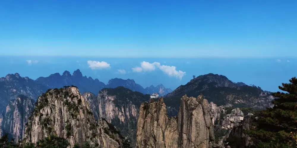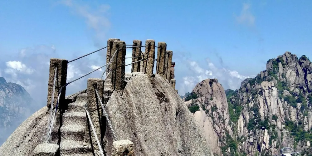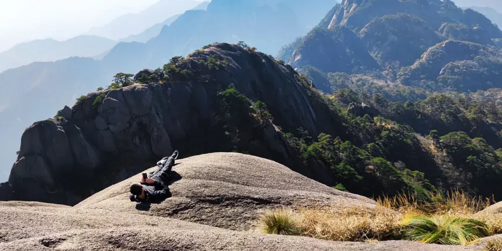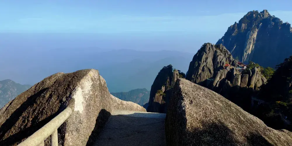 光明頂是黃山的較高峰,海拔1860米,因高曠開闊,日光照射長而得名。登上光明頂觀景特別棒,這裡不僅是俯看四周壯麗群峰的好地點之一,也是看日出、日落、雲海的好地方。