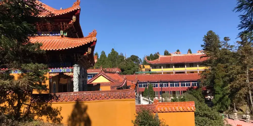 早在唐代天宮山上已經建有寺廟,至清代時香火已?芏κⅰ=昀刺旃剿鹿勱ㄖ歡賢暾椋較陸ㄓ猩矯牛肷矯藕笠來斡形焱醯睢⒋笮郾Φ睢⒋蟊睢⒌夭贋醯鉅約骯芻勐ァ⒎鶥謾⒃得尉帷⒈齬蕕齲餿核鹿勱ㄖ釙隊詵皆?.2平方公里的山間,為山景增添不少秀色。天宮山自然風光神奇秀麗,在山中可觀雲海、奇峯、泉瀑以及晨曦、夕陽、嵐霧等景像,令人留連忘返。