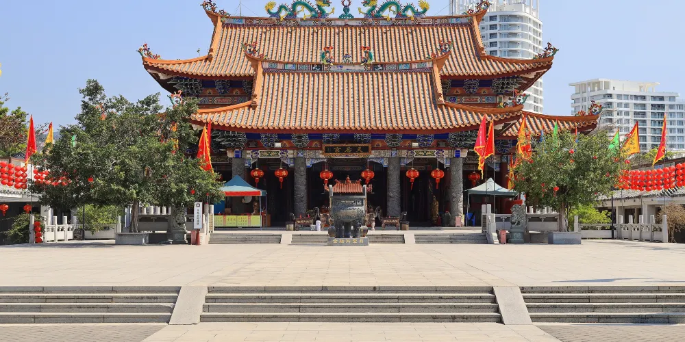天后宮位於惠州巽寮灣旅遊度假區內,始建於清朝末期,距今已有400多年曆史,經過後期復建,如今這幢兩層高的天后宮香火不絕。媽祖是沿海地帶人民十分景仰的民間神祗,傳說每逢有人海中遇險,媽祖便能顯身救人。天后宮並不大,來此的遊客多為祈福或瞻仰這座古寺,領略惠州人民的媽祖文化。天后宮所在的歷史文化商業街擁有眾多特色商品,旁邊還有著一條美食街,都是值得一逛的去處。