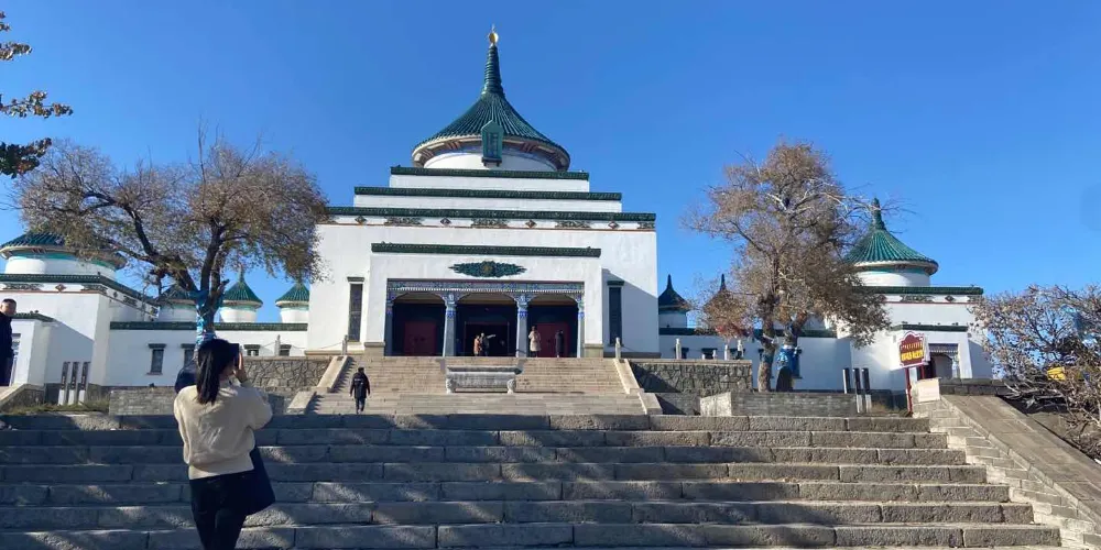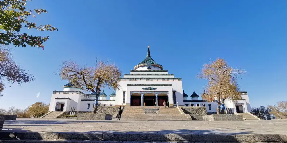 成吉思汗廟位於烏蘭浩特市城區北側罕山山頂,在罕山公園內,地址是烏蘭浩特市興安北大路82號。該廟建成於1944年,是全國唯一一座祭祀成吉思汗的廟宇。廟宇由藝術家耐勒爾設計,融蒙、漢、藏三個民族的建築風格於一體,採取古代漢族建築中慣用的中軸對稱布局手法,建築主體圓頂方身,綠帽白牆,具有典型的蒙、藏建築特色。在這裡還可俯瞰烏蘭浩特市全景。