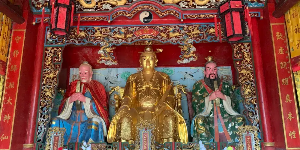 天師家廟又名留侯家廟是道教創教者張道陵天師的家祠,內供奉由祖宗張良及張道陵一代天師至第六十三代張恩溥天師的神位,是道教的祖廟..張良(約公元前250—前186年),字子房,漢初政治家、軍事家,西漢開國元勛,史稱“漢初三傑”之一。至今,安徽廬江、陝西漢中、河南蘭考、張家界,山東省濟寧市微山縣等都説有張良墓,令人真假莫辨。張良秦末漢初謀士、大臣,祖先五代相韓。秦滅韓後,他在博浪沙狙擊秦始皇未中。逃亡至下邳時遇黃石公,得《太公兵法》,深明韜略,足智多謀。秦末農民戰爭中,聚眾歸劉邦,為其主要“智囊”。楚漢戰爭中,提出不立六國後代,聯結英布、彭越,重用韓信等策略,又主張追擊項羽,殲滅楚軍,為劉邦完成統一大業奠定堅實基礎,劉邦稱他“運籌帷幄之中,決勝千里之外”的這一名句,也隨着張良的機智謀劃、文韜武略而流傳百世。漢朝建立時封留侯,後功成身退,千古流芳。