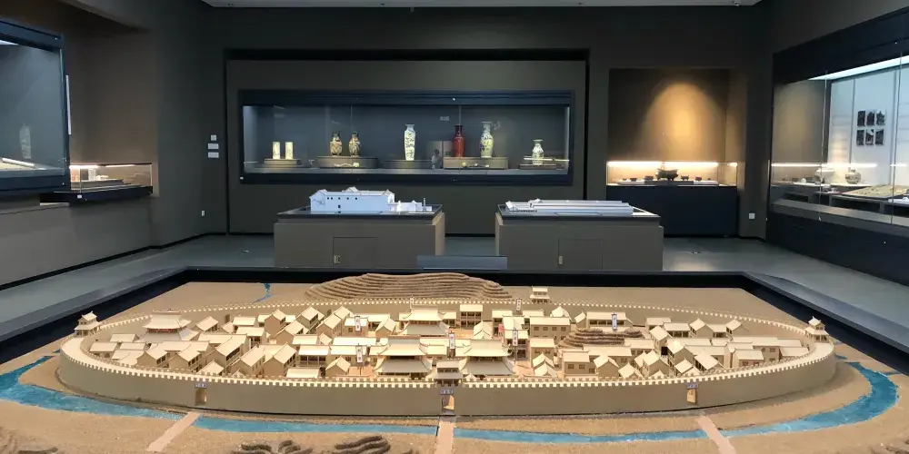 全館分展示區和管理區兩部分,展示區設5個展廳,管理區設文物庫、辦公室、資料室、會議室、文物修複室、視聽室和專家樓。按職能分為考古、文保、群工、保管、陳列設計、文物修複、安全保衛等工作。