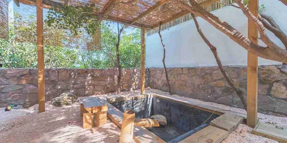 天泰峪尚溫泉位於即墨溫泉旅遊度假區,坐擁四捨山脈,與鰲山灣相對。溫泉所在的景區是集海水浴嘗登山探險、高爾夫運動、星級賓館、特色美食等休閒娛樂項目於一體的綜合性大型度假區。這里風景優美,空氣清新,是休閒度假的好去處。