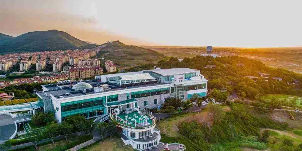則評價青島國際博覽中心是由大型企業南山集團下屬青島長基置業有限公司,斥資20億建設的大型國際化展覽中心,由美國NBBJ公司設計。博覽中心位於青島市東部濱海大道即墨區温泉街道路段,南鄰鰲山灣海域,可通過公路、輕軌和遊艇等交通設施直接抵達,交通十分便捷。
