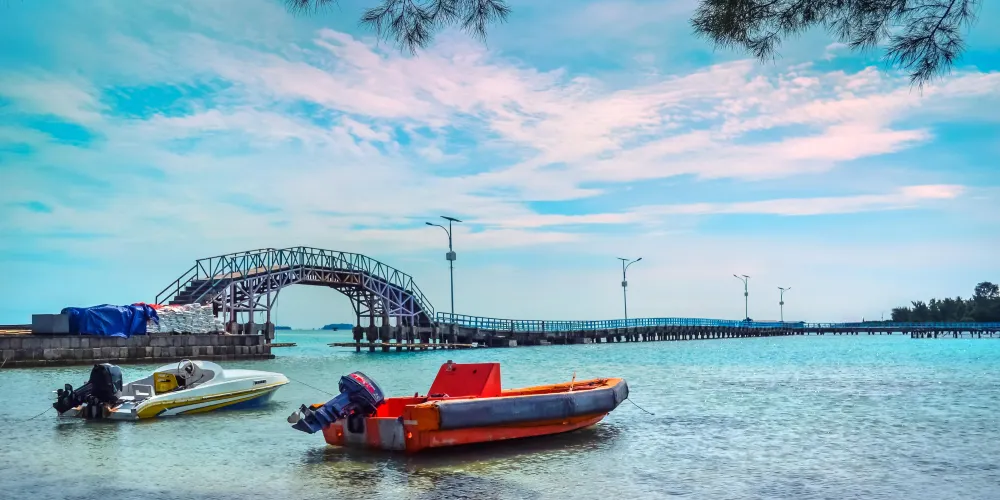 Tidung Island屬於雅加達灣的千島群島中的一個居民島,開發力度很小,費用比較便宜,海水相對清澈、珊瑚成片,島上人比較多,住宿環境都以民宿為主,當地居民十分淳樸。Tidung Island上有一座標誌建築叫愛情橋,去的人都喜歡往下跳。