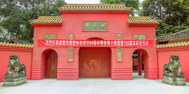 鐵像寺位於成都市高新區南郊,明代萬曆十八年(公元1590)掘地得鐵鑄釋迦牟尼佛像,因建寺供奉,所以名叫鐵像寺。鐵像寺山門的匾額是中國佛教協會會長趙樸初題寫的。整個建築既獨立成院,又渾然一體。一進山門便能看見雄偉的觀音殿,殿內供奉一座金絲楠木慈悲莊嚴的觀世音菩薩坐像,觀世音菩薩救苦救難在大千世界深受各類眾生的敬仰。