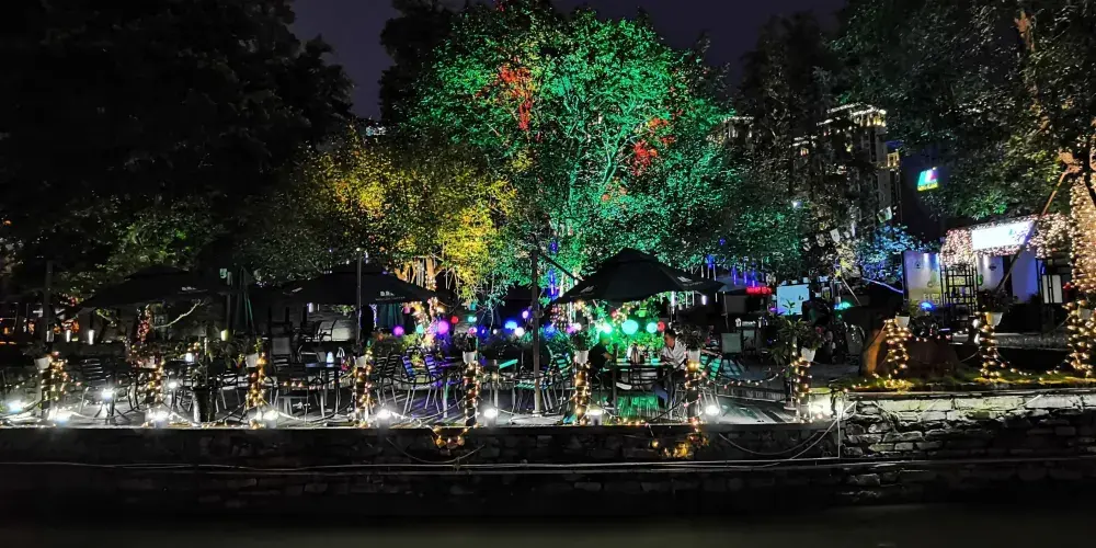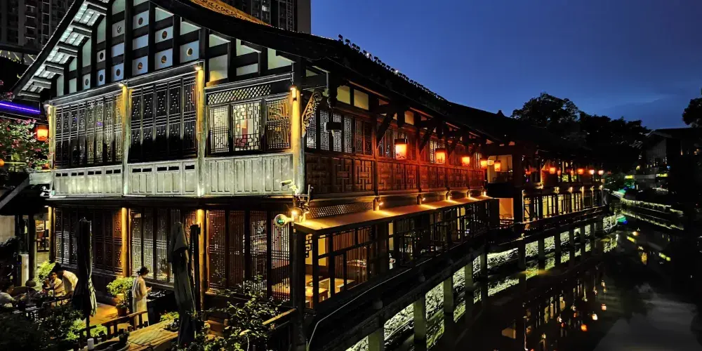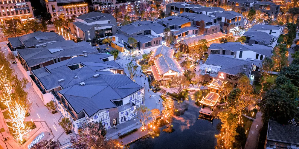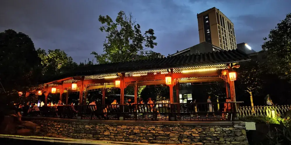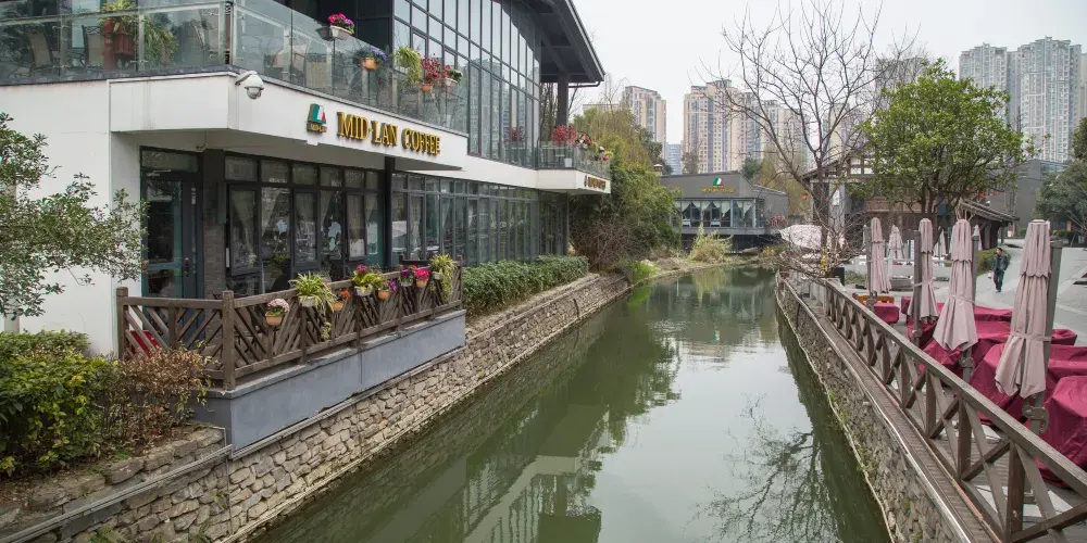 成都鐵像寺水街位於成都會武侯區劍南大道與盛邦街交匯處,毗鄰始建於明代萬曆年間的鐵像寺,是一條融合傳統與現代、文化與商業的特色街區。這裡不僅是成都高新區打造的「水系綠地鏈」示範項目,也是體驗成都慢生活的好去處。