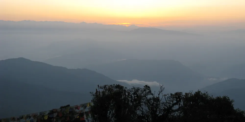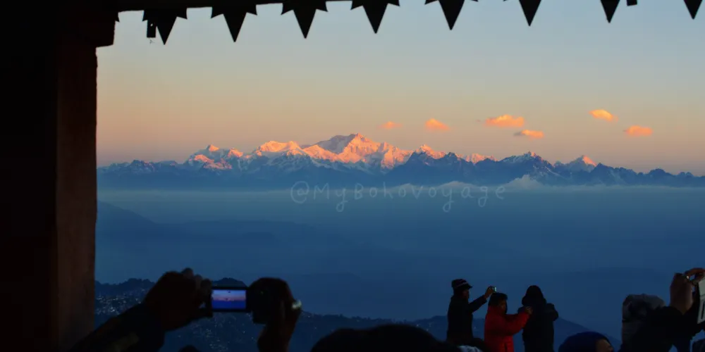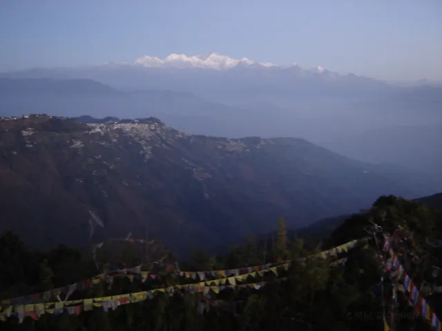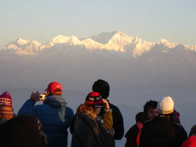 在老虎嶺觀賞幹城章嘉峰與喜馬拉雅山群峰的日出,是造訪大吉嶺的重點行程。海拔2590米的老虎嶺距離市區約13公裡,看日出的遊客得淩晨摸黑出門,搭乘吉普車前往,破曉前山頂已擠滿人潮,由觀景台眺望,一側是等待太陽浮現的雲海,一側是等待陽光普照耀的群峰。最動人的就是從渲染著如波斯菊般金黃色的淡彩天空,至陽光升起那刻、照耀著幹城章嘉峰反射出山頂積雪的銀色光芒,每分每秒的景色變化都讓人感到驚豔,捨不得移動腳步,只為多看這壯闊的精緻一眼;若幸運的話,還能遠眺聖母峰。