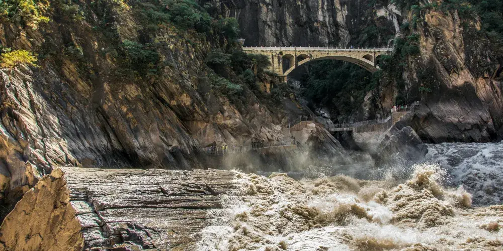 虎跳峽以極大的落差聞名世界,位於香格里拉縣虎跳峽鎮東部,分為上、中、下虎跳三段,全長約20公里。峽谷中間就是金沙江,兩岸是玉龍、哈巴兩大雪山,江面最窄處僅二三十米,加上巨大的落差,江水奔騰洶湧。虎跳峽還是世界知名的徒步勝地,每年都會有很多慕名而來的戶外愛好者。