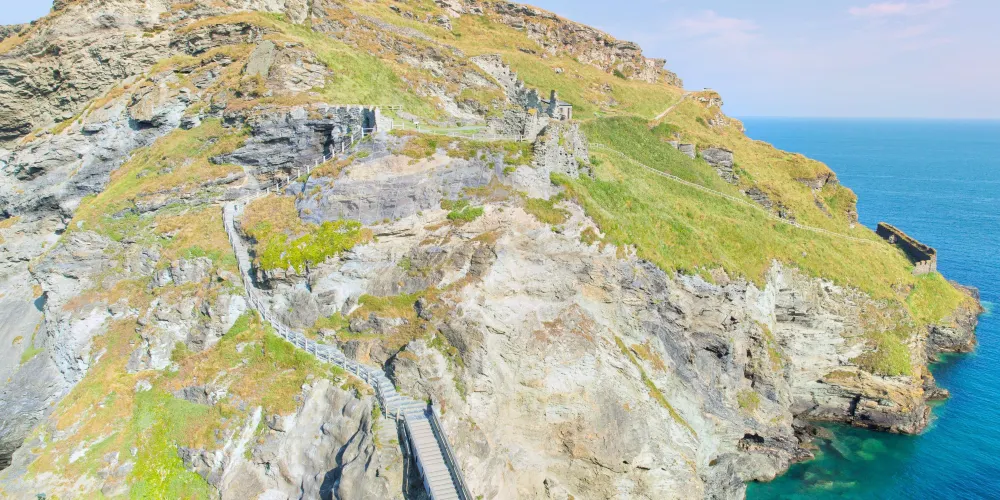 廷塔傑爾城堡的遺址不止一處,在發掘出的所有遺址中,大多都可以追溯到13世紀,越來越多的證據表明亞瑟王出生在廷塔傑爾城堡裏。城堡挺立在巖石半島的高台上,通過一條陡峭的棧道和橋樑和英國本土相連。