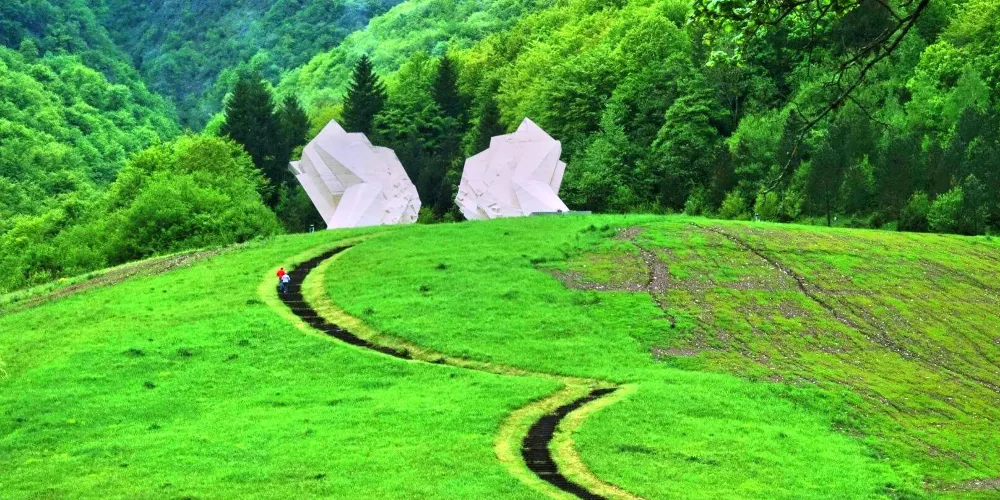 波黑境內小眾的二戰後紀念碑,為了紀念二戰時期在蘇捷斯卡戰役中犧牲的士兵們。體積巨大、形狀奇特,紀念碑散發著奇異的未來感和荒涼感,充滿了人們對過去的緬懷和未來的嚮往。在山上和山下觀賞紀念碑,會有不一樣的景色和感受。