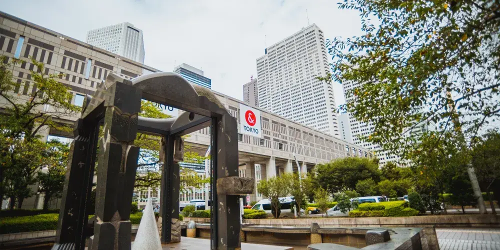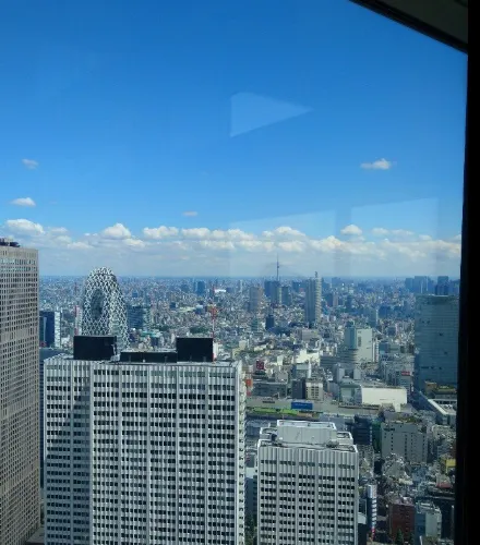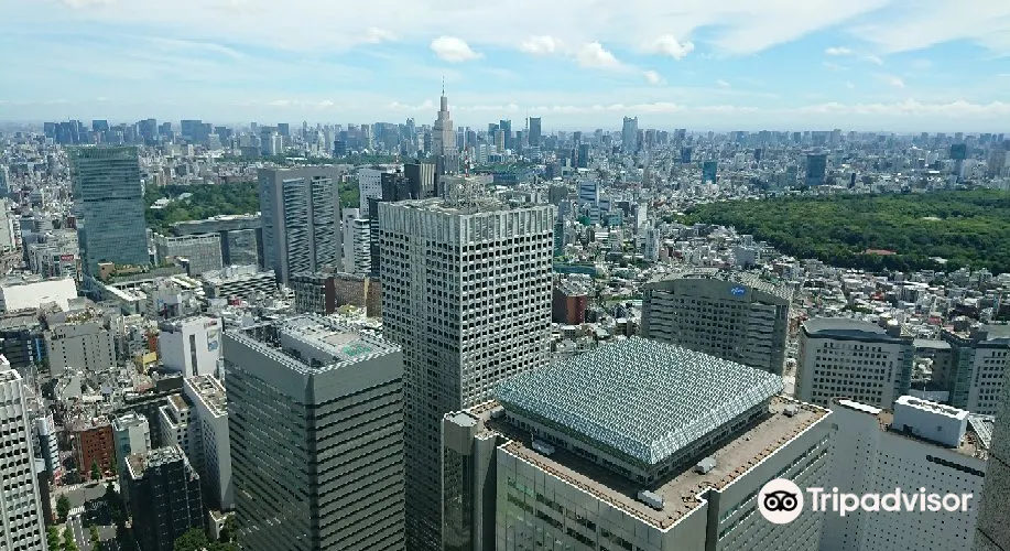 車站西邊是新宿區的摩天大樓區,聳立著京王、希爾頓、凱悅等飯店及高層辦公大樓,而新宿區的一大標誌性建築——東京都廳也在其中。該廳頂樓設有東京都廳觀景台,可360度鳥瞰東京都,看夜景很不錯。都廳以北不遠的I-Land Tower前有一個LOVE雕塑,是日劇《電車男》中出現過的場景,感興趣的話可以過去瞧一瞧。