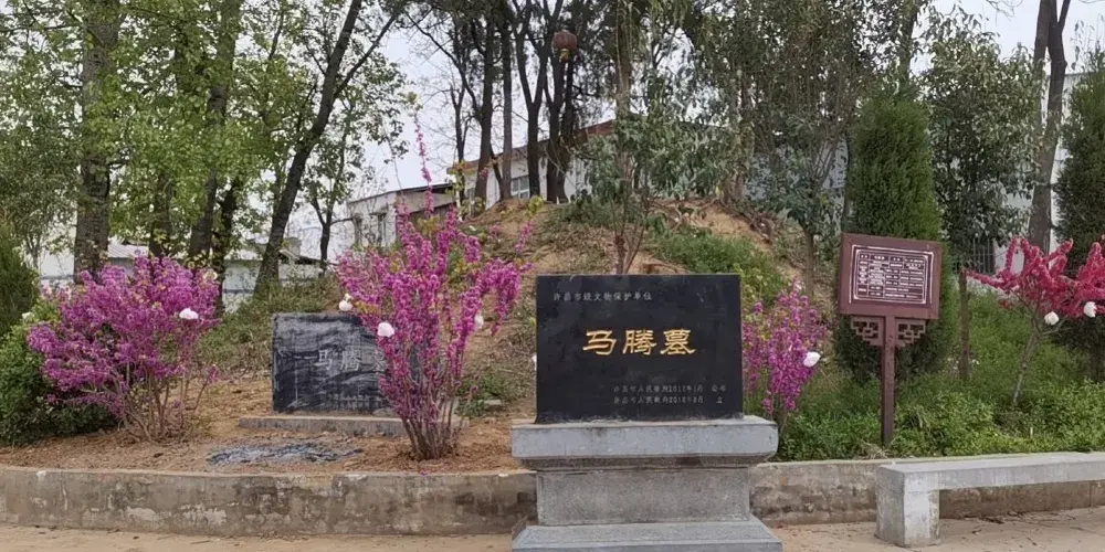 三國時期,馬騰接受曹操的綏撫,立下了汗馬功勞,被召入京師,封為衞尉。其子馬超,入蜀歸順劉備,被封為"五虎上將",馬騰及其家屬因受到株連被殺,葬於許昌市北10公里的蘇橋鄉中許村,石樑河畔。