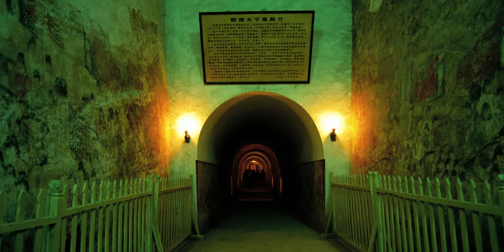 懿德太子墓是唐高宗李治及武則天之孫,唐中宗李顯和韋皇后長子李重潤之墓。它是距離幹陵較近的一座土陪墓,也是迄今為止所發掘唐代墓葬中規模大、規格高、屬帝王級的陵墓。