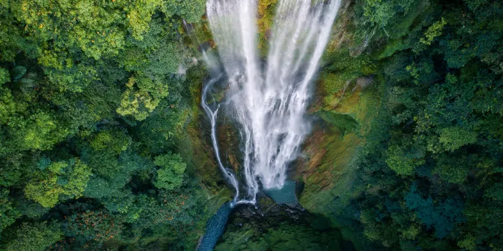 通靈大瀑布位於廣西古龍山水源林自然保護區內,距離靖西縣城約30公里的通靈大峽谷中。通靈大峽谷全長約1000米,寬200米,深300米。猶如地球突然裂開一條縫,形成一個碩大的"天坑"。通靈大峽谷是集瀑布、天坑、地下河、溶洞、豐富的大自然植被為一體的新發現的觀光景點。通靈大瀑布豐水期寬度約30多米,枯水期也始終保持10多米的寬幅。洶湧清澈的河水一頭栽進"天坑",形成一個單程高達160多公尺的瀑布倒掛前川。雨季來臨,峽谷內瀑布聲如滾滾春雷;震耳發聵;旱季時節,峽谷內瀑布聲如喧嘩鬧市,令人神往。更令人稱奇的是,從天而降的大瀑布與從地下突然冒出的長約800米的地下河交匯,一起進入瀑布下方一個叫鴛鴦潭的深潭後,便又悄沒聲兒地消失在地下河中,不管多大的水都無法淹沒峽谷。步入峽谷,但見古樹老藤遮天蔽日,珍稀植物種類繁多,山澗清流急喘直下,溶洞景觀天然獨特。而隆隆的大瀑布則為大峽谷更增添了神秘莫測的色彩和無比壯麗的景觀。根據初步測定,通靈大瀑布高達一百六十八米,寬三十米,是目前中國發現的落差大的瀑布。一年四季瀑水凌空而下,水霧騰空,聲如炸雷,氣勢雄偉。瀑布兩側懸崖矗立,谷底有明、暗河,四周古樹參天,老藤遮天蔽日,奇特的地形地貌匯集了品種繁多的珍稀植物,種類之多僅次於雲南的西雙版納。通靈大瀑布位於距靖西縣城三十公里的廣西壯族自治區龍山水源林自然保護區內,離聞名於世的跨國瀑布大新縣德天瀑布三十多公里。通靈大瀑布秀峰延綿、河流縱橫,風景異常優美。峽谷內統合了世界中罕見的特高瀑布群、洞中瀑布、地下河、峽谷溪流、洞穴觀光、古石壘、古懸葬,原始植被等自然景觀與人文景觀,整個景區古樹老藤遮天蔽日。遊通靈大峽谷,使您賞心悅目的還是多達兩千多種各類珍稀植物,這裡有瀕臨滅絕的國家一類保護植物,如有出現在侏羅紀時代與恐龍同時生長的桫欏群、蓮子觀音坐蕨等蕨類植物,還有碩果累累的桄榔樹、奇異的咬人樹、艷麗的火焰樹等珍稀植物,使通靈大峽谷蒙上了神秘的面紗,真可與雲南的西雙版納相媲美。我們身臨如大千妙鏡,讓人彷彿回到了遠古時代。