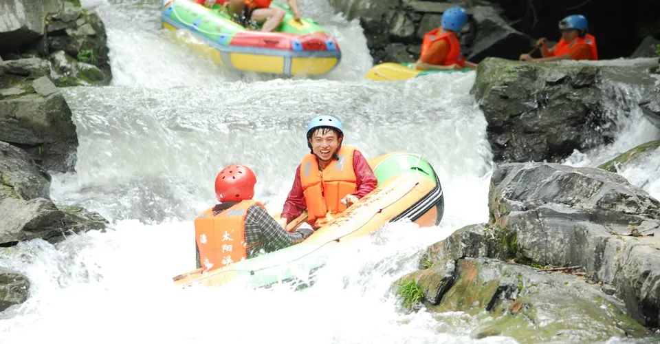 太陽溪漂流位於湖北省通山縣海拔1380米的太陽山山麓——夏鋪鎮青山村,景區交通便利,距武漢市僅120公里。漂流河道長約5公里,落差100餘米,漂完全程約需2小時。屬於大落差、強刺激的雙人自助漂流,漂亮河道兩岸懸崖峭壁、怪石嶙峋、灘多水急、跌宕起伏;河道落差大、落差陡,共有數十個2至8米高的大落差,很多落差接近於垂直,享受極限的刺激快感而又有驚無險是太陽溪漂流的大特色。